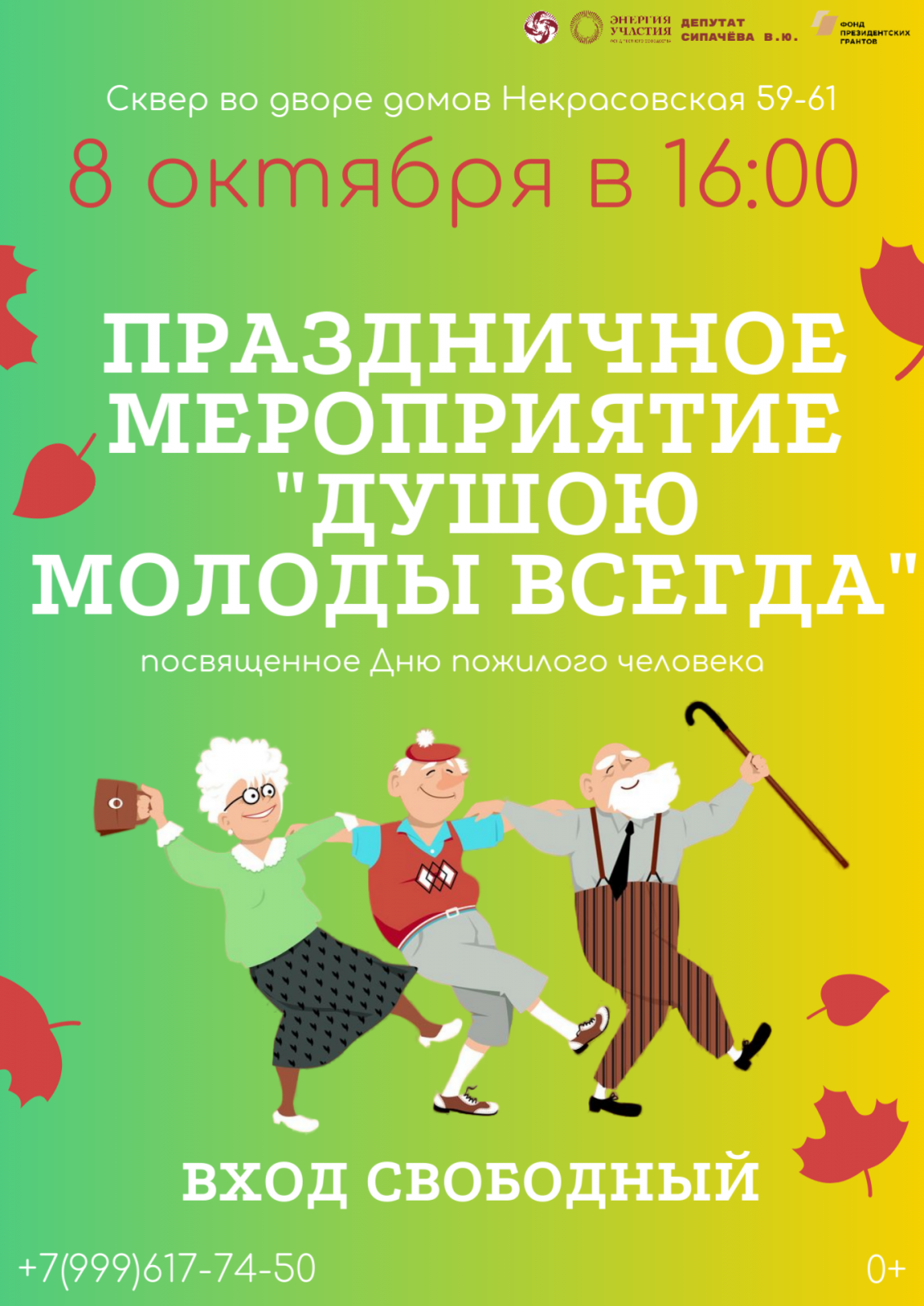 Чтобы этот праздник запомнился теплом и улыбками, я приглашаю на праздничное мероприятие. Ждём всех 8 октября с 16:00 до 18:00 в уютном сквере между домами по ул. Некрасовская, 59-61.