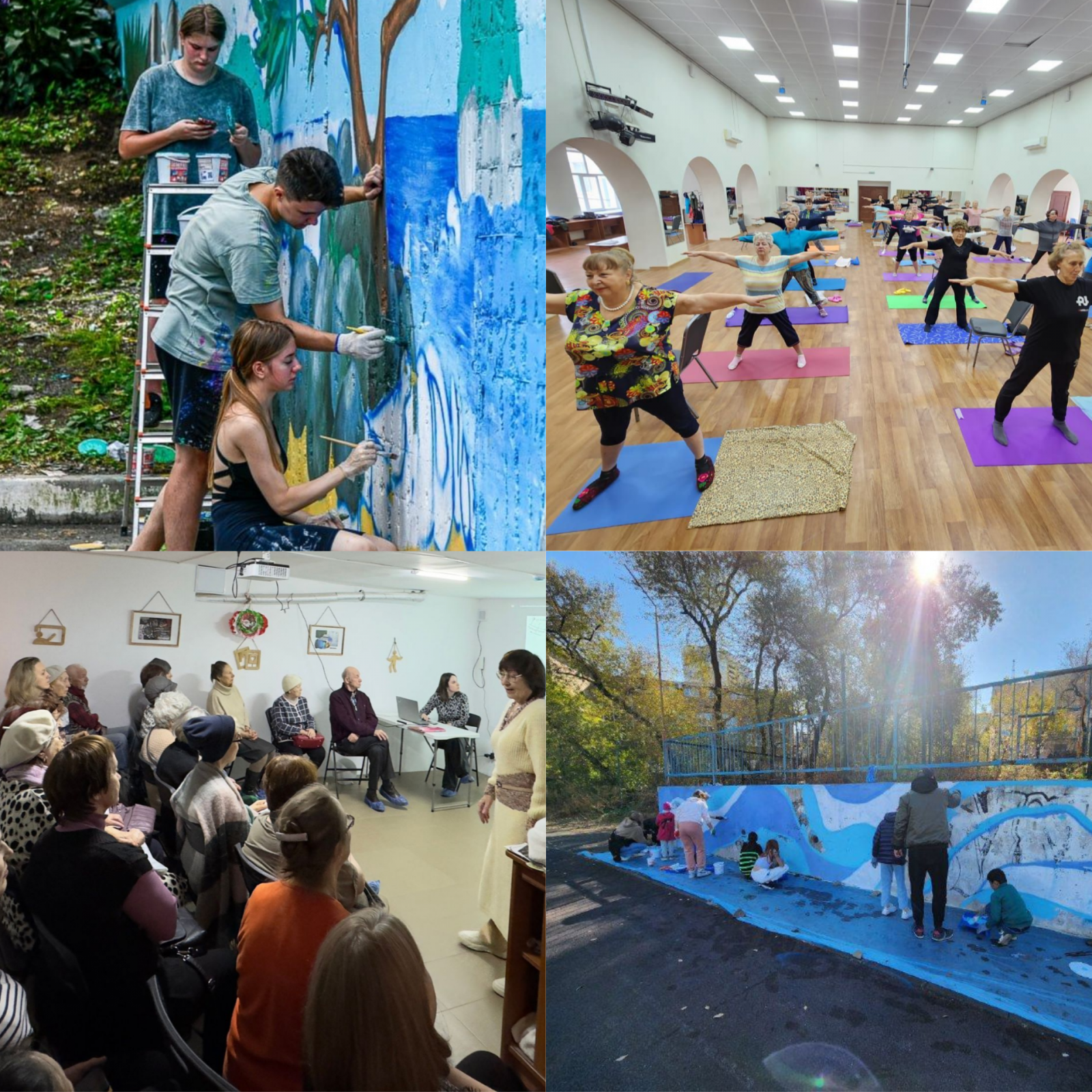 Благодаря проектам прошло более 40 различных мероприятий (концерты, экскурсии и лекции) и 48 занятий коуч-йогой для старшего поколения, а также преобразилось 6 объектов: заборы, подпорные стенки и ТПшки. Многие из вас сами выбирали эскизы, участвовали в покраске и делились идеями. Сейчас КАГУ «Приморский НИЦ социологии и гражданских инициатив» проводит оценку всех проектов, получивших поддержку в 2023 году.