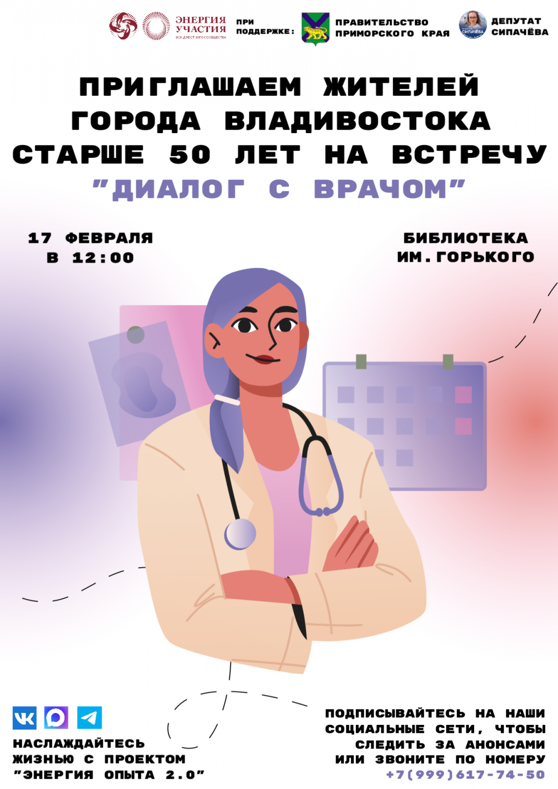 Тема встречи - психологическое благополучие, внутреннее спокойствие и поддержка в зрелом возрасте. В формате живого диалога участники смогут задать вопросы специалисту и получить полезные рекомендации по сохранению эмоционального здоровья.