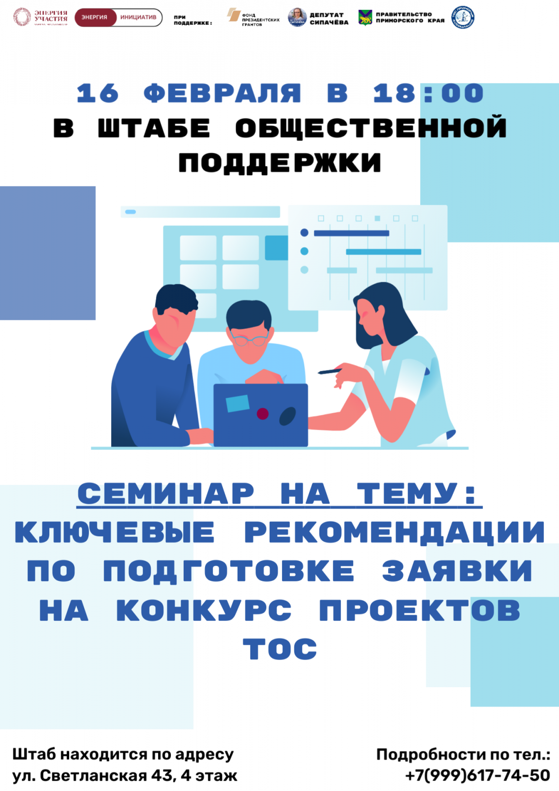 Семинар на тему: «Ключевые рекомендации по подготовке заявки на конкурс проектов ТОС».
